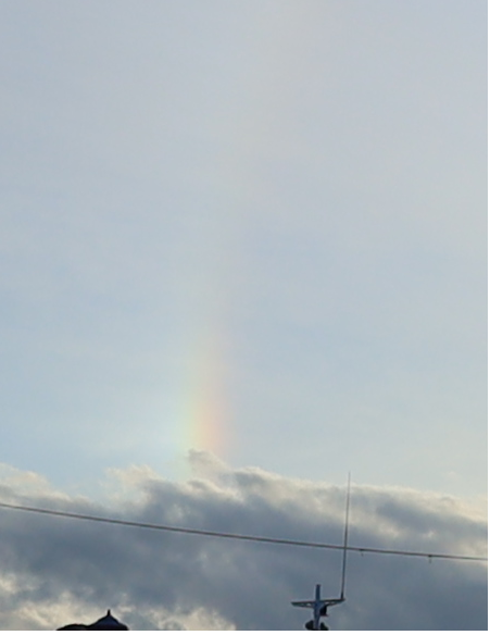 改めて見ると下画像の太陽の左側に虹のようなのが見え2枚目は明るくして拡大したもの。