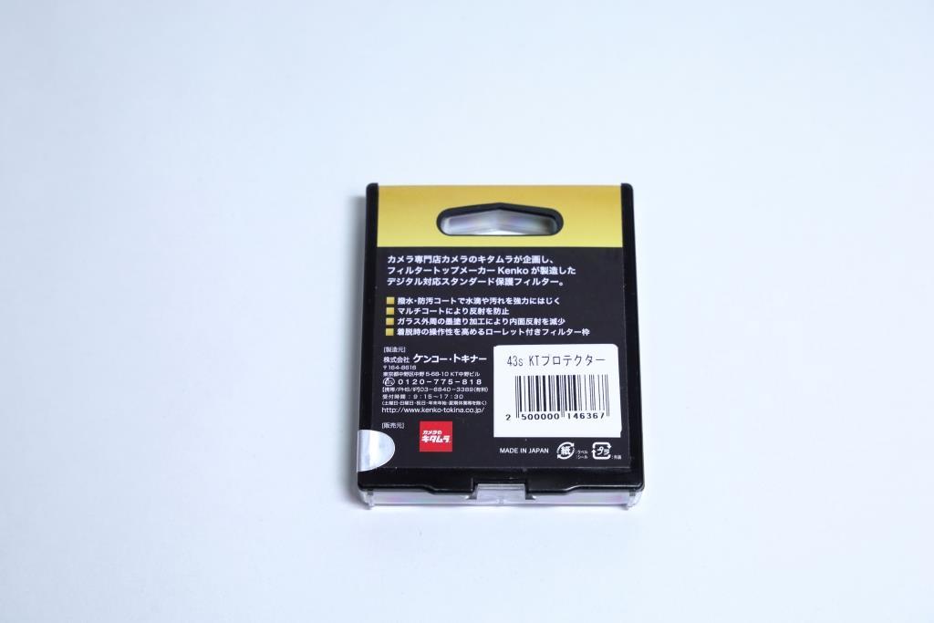 フィルター径43mmの価格は税込2,838円と良心的な価格でパッケージ裏面に「株式会社ケンコー・トキナー」の