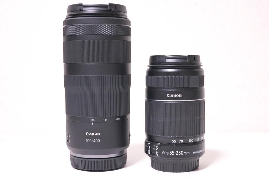 RF100-400mm F5.6-8 IS USMとEF-S55-250mm F4-5.6 IS STMとの大きさ比較