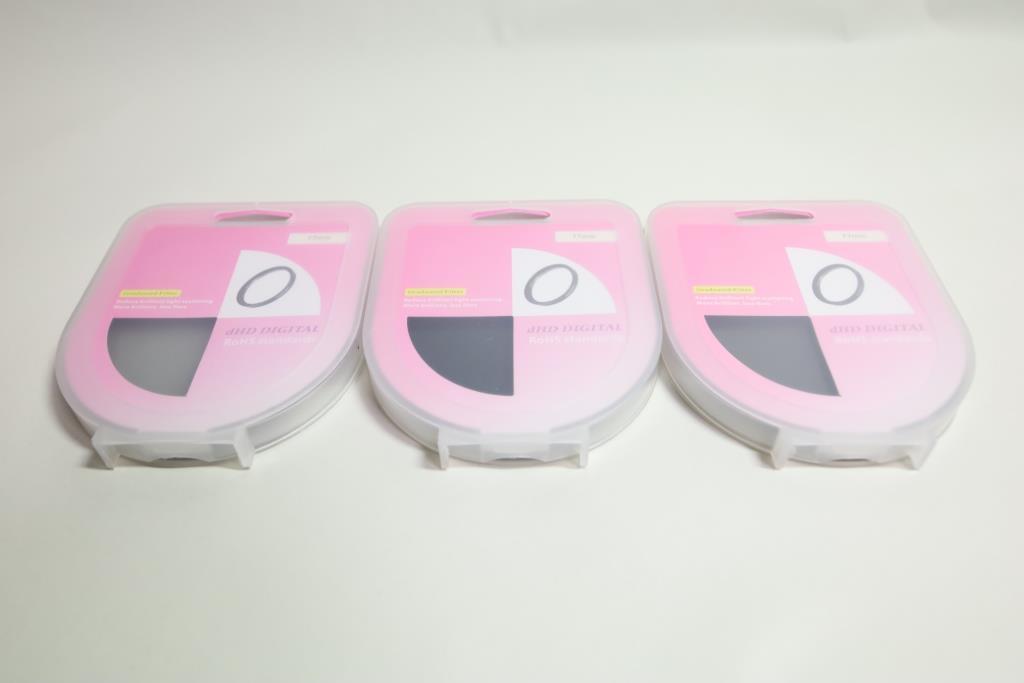 左の明らかに色が薄いのはND2と分かりますがND4とND8の違いが分かりづらいものの