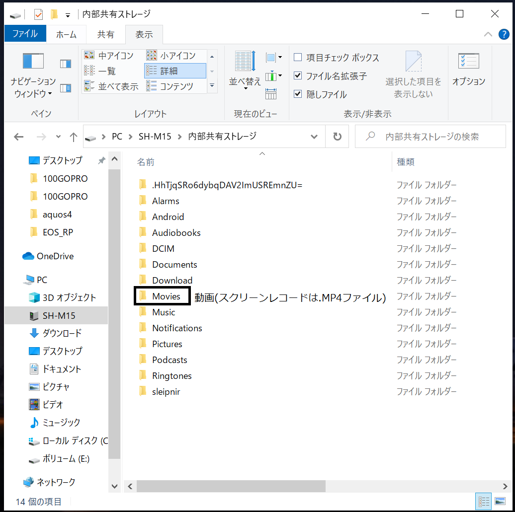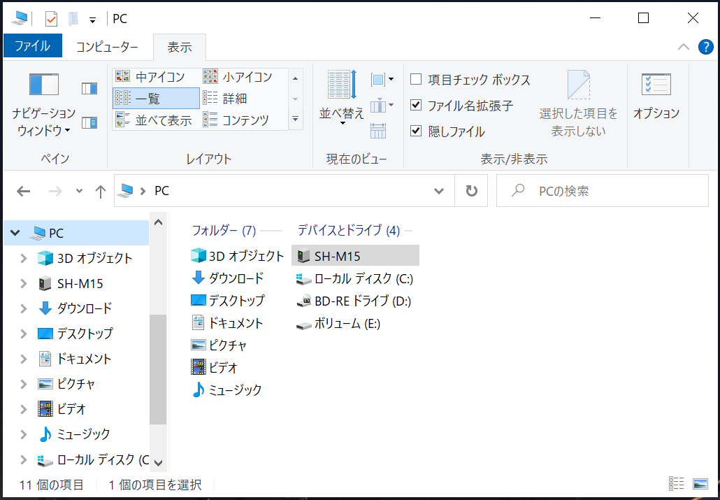 ・パソコンのPC→SH-M15→内部ストレージが表示されれば完了です。