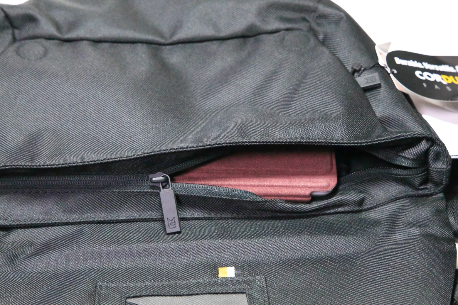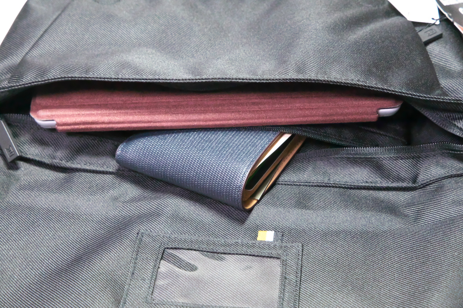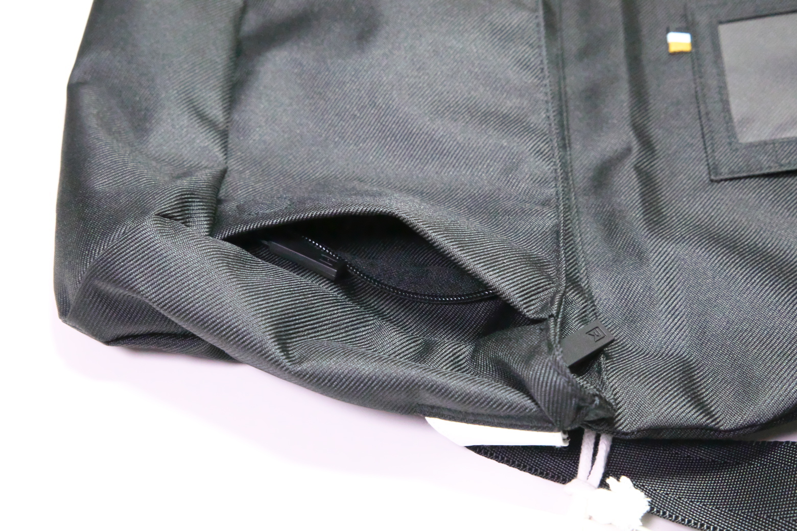 MILESTO Hutteボディバッグは、フラップをめくるとファスナーがあり、タイプカバーを装着した