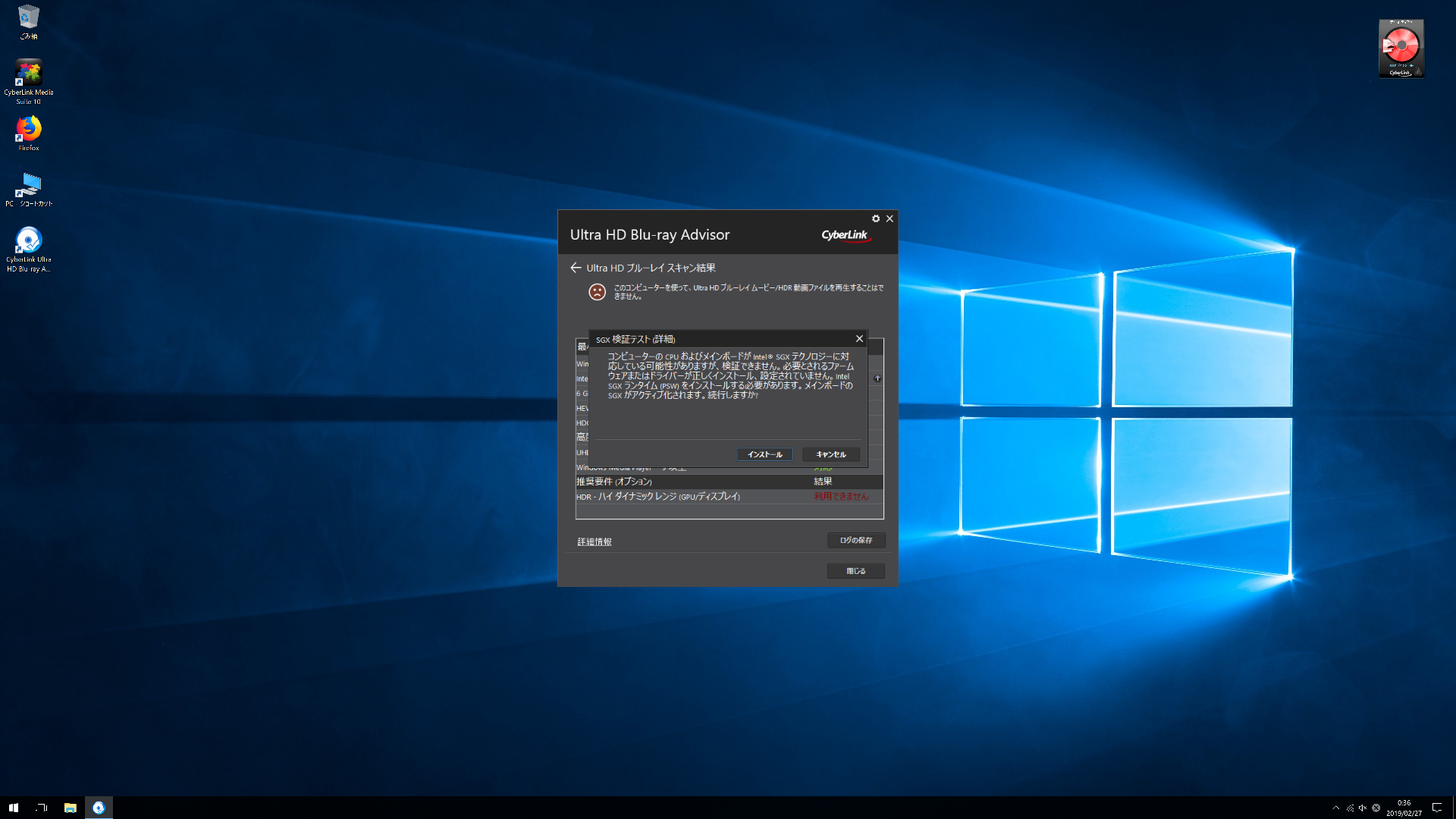 Ultra HDブルーレイスキャン結果SGX検証テスト(詳細)にはSGX対応・非対応を確認する為の「SGXランタイム(PSW)」を