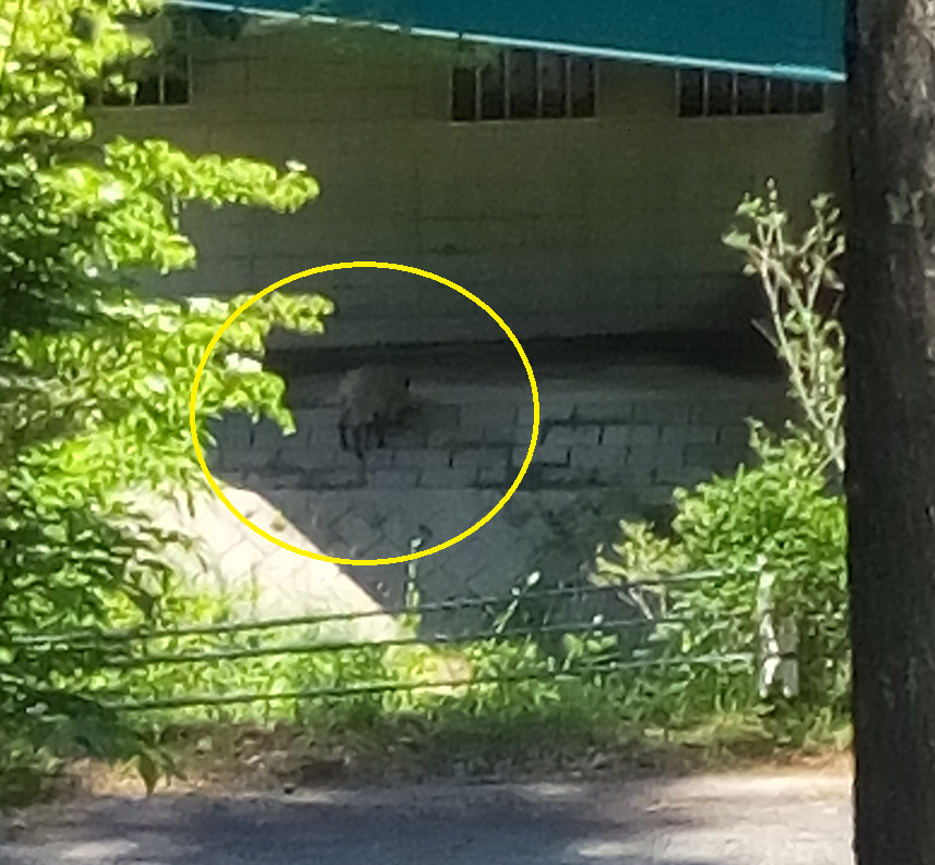 コンクリートが保護色となりスマホのカメラで撮影した為見づらいですが餌を探して?降りて来たみたいです。