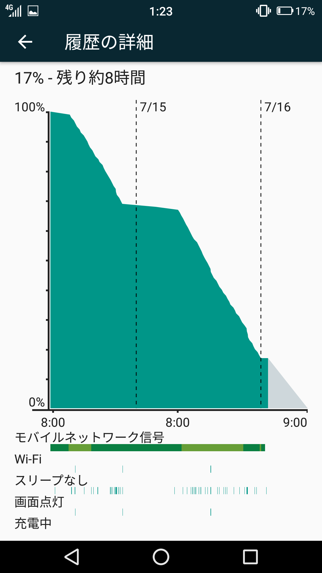 ※2日間FREETEL REIでWi-fiテザリングを使用した時の電池残量は17%